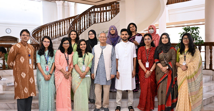 National Policy Competition winners exchange greetings with Chief Adviser